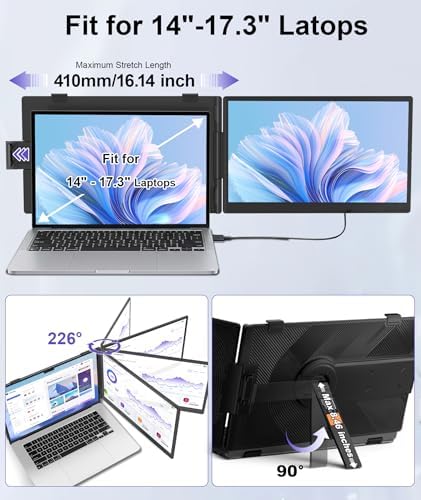 【Wide Compatibility & Worry-free Support】The screen extender monitor portable and made with upgraded high-quality materials, featuring certifications for QC, FCC, CE, and RoHS. It is widely fit for 14-17.3″ laptops, and seamlessly compatible with multiple devices, including Windows, macOS, ChromeOS, Linux, and Android systems. We offer a 1-year warranty, 30 days of free returns, and a 24-hour responsive support team. Contact us when you need—we’ll provide timely, professional assistance to ensure a smooth, worry-free experience.