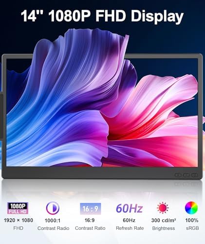 【1.87lbs Ultra-Portable Design】Designed as an ultra-portable & ultra-thin, only 1.87lbs and 0.27“ thin, making this portable monitor for laptop ultra-light, ultra-portable, and more stable. It is much lighter than your laptops and the previous 14-inch laptop monitor extender. It’s widely fit for all 14-inch to 17.3-inch laptops. The ultra-light and portable design allows you to easily take it with you and build your workstation as you want. Efficiency improves your airport, business trips, and travel productivity; it is an ideal choice for those who frequently travel, remote workers, students, and programmers.