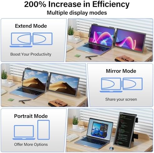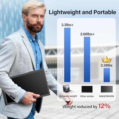 📈【Portable & Save Desk Space】Weighing only 2.38lbs, easily be attached to your laptop and serve as a second screen without requiring additional desktop space. You can take it Home, Travel, Office, Coffee Shop, Hotel, Airport, Courtyard, Etc. Perfect for people who work and play on the go or from home