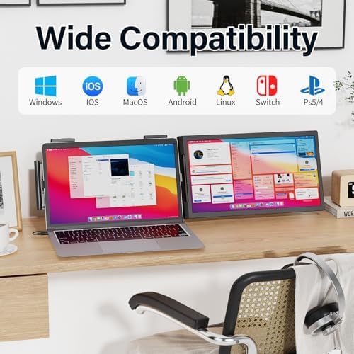 💻【Wide Compatibility】Plug and Play, our screen extender portable laptop is compatible with 14-16.5 inches and multiple operating systems: Windows, Mac, Chrome, Android, Linux, Dex and Switch. No need to download anything or buy extra cables