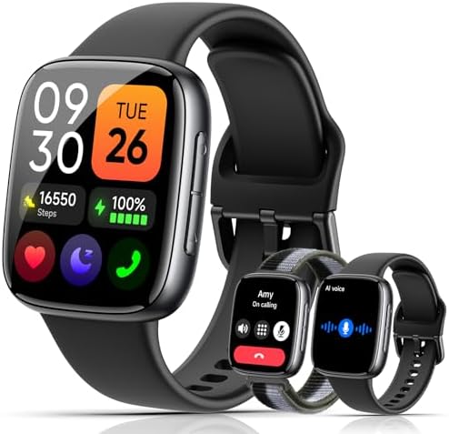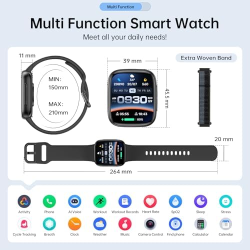 【Dual Comfortable Bands Included】 – Smart Watches for Men and Women Accommodates wrists from 130 to 210mm (5.12-8.27 inches), Comes with both a soft silicone band for active use and a breathable woven band for daily wear, easily interchangeable for different occasions and outfits.