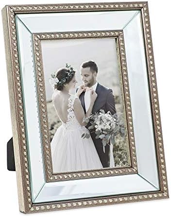 ELEGANT DESIGN: The mirrored finish to this sophisticated frame reflects light, making even the smallest rooms feel brighter and more spacious. This gorgeous frame wonderfully captures the beauty in your favorite portrait and landscape shots. The angled mirror frame is accented with a beaded border on its outer and inner edges that creates the striking “pop out” effect. The distressed metallic borders give off an allure that’s both chic and antique looking.