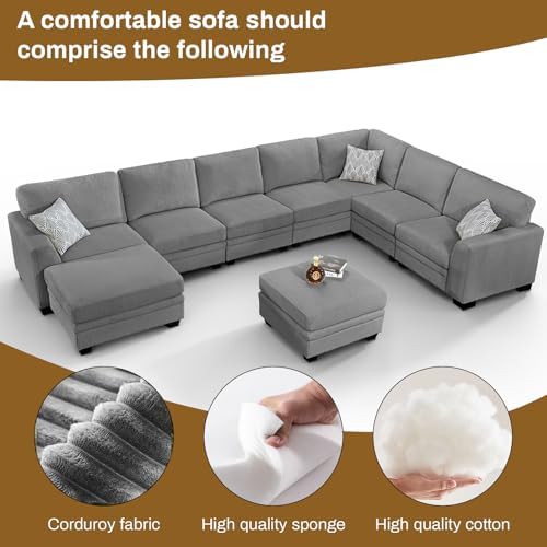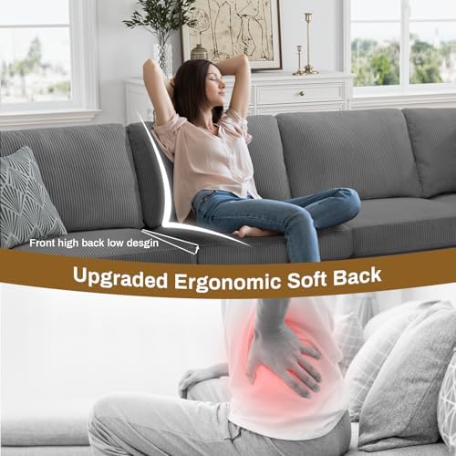 【High Quality Materials】This modular sectional sofa is made of high-quality corduroy fabric with a unique texture that provides a soft and warm touch.The sectional couch is able to maintain its quality and appearance for a long time and has excellent durability.The classic design of the comfy couch is suitable for a variety of scenes,such as a warm living room or a quiet study.
