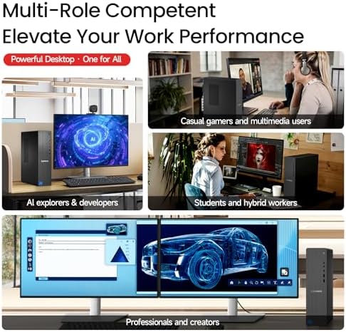 EXTREME MULTITASKING, BLAZING-FAST SSD: Built for speed, this Lenovo computer desktop with 32GB high-bandwidth DDR5 RAM offers up to 2.5× faster performance than DDR4 for smooth gaming, video editing, and heavy multitasking. The 1TB PCIe NVMe M.2 SSD ensures rapid boot and load times on the desktop pc tower, while expandable hybrid storage supports business data, AI software, large files, games, and media