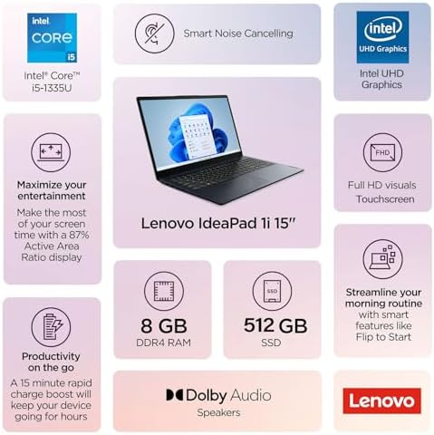 Lenovo IdeaPad 1 15.6″ FHD Touchscreen Laptop, Intel Core i5-1335U, 16GB RAM, 512GB SSD, Webcam, HDMI, SD Card Reader, Wi-Fi 6, Win 11 Home, Abyss Blue, Bundle with Thunderobot ML101 Wireless Mouse