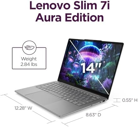CREATE LIMITLESSLY – The Lenovo Slim 7i Aura Edition packs 17 hours of battery life in a lightweight chassis that starts at just 2.82 lbs. Thin yet durable, the Lenovo Slim 7i Aura Edition is ready to streamline your adventures with Smart Experiences.