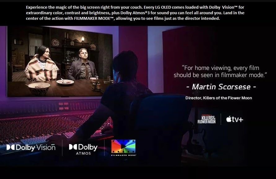 Dolby vision, cinema & Dolby atmos: Experience the magic of the big screen from your couch. Every LG OLED comes loaded with Dolby Vision for extraordinary color, contrast and brightness, plus Dolby Atmos, for sound you can feel all around you. Land in the middle of the action with FILMMAKER mode, letting you watch movies just the way the director intended.