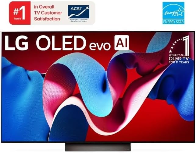 The advanced LG OLED evo C4-Series is better than ever. The LG OLED evo C4 is powered by the next-gen α9 Gen7 AI Processor —exclusively made for LG OLED—for ultra-realistic picture and sound along with boosted brightness for luminosity and high contrast, even in well-lit rooms. AI-assisted deep learning analyzes what you’re watching to choose the best picture and sound setting for your content. The C4’s almost invisible bezel, ensures it blends with your surroundings. When you’re finished watching, display art, photos and other content make the C4 a versatile statement piece. Search less and stream more, thanks to the next generation of AI technology from LG webOS 24. Every LG OLED comes loaded with Dolby Vision for extraordinary color, contrast and brightness, plus Dolby Atmos for sound you can feel all around you. And FILMMAKER MODE allows you to see films just as the director intended.