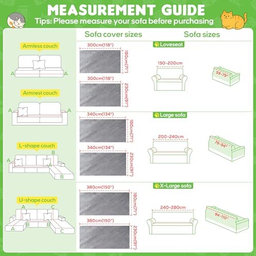 🐾 Multiple Sizes for a Perfect Fit: LOIION’s cat couch cover comes in 3 sizes to match your furniture: Chaise Lounge (118”x71”), 3-Seat Sofa (134”x71”), and Oversized Sofa (150”x71”). Refer to the size guide and measure your sofa before buying. For L-shaped sectionals, just purchase 2 or more!