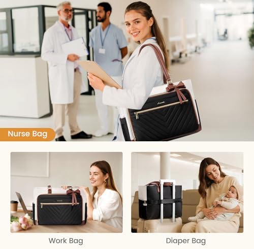 Padded Laptop Compartment: This laptop bag includes a padded sleeve that provides excellent impact protection, making it ideal for work, business, travel, or everyday use. The roomy main compartment can easily hold books, folders, and more, making it versatile enough to serve as a teacher’s bag or a nurse’s bag. It’s also perfect for new parents to use as a diaper bag, efficiently organizing baby essentials like clothes, diapers, and bottles.