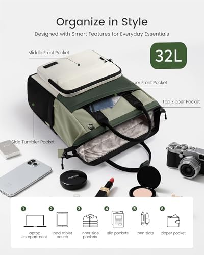【Easy Access & Organized】The wide wire-frame opening gives quick access to everything inside. Includes a padded 17.3″ laptop compartment, 12.9″ Ipad sleeve — perfect for a travel backpack for women or everyday bookbag.