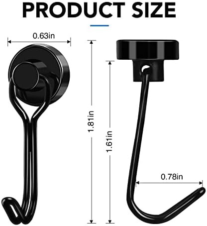 【 High Quality 】 The rotating swing magnetic hook heavy duty has a pulling force of 30 pounds and is based on horizontal applications – reducing by 2/3 if used vertically. The magnetic hook features a heavy and stable magnetic surface, with strong magnetism lasting forever!