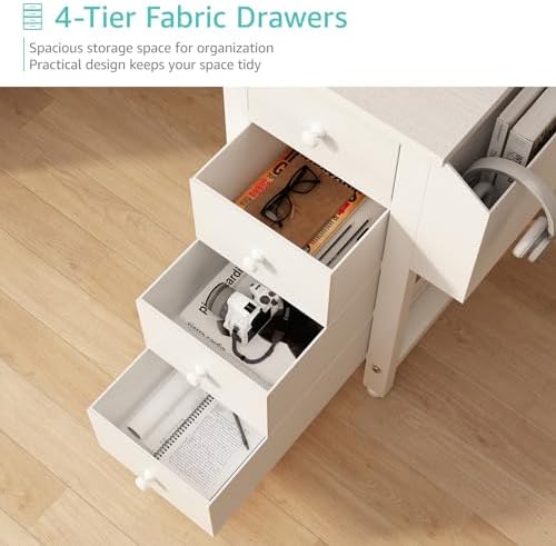 47 inch L Shaped Computer Desk With 4 Fabric Drawers & Storage Shelves for Home Office Bedroom