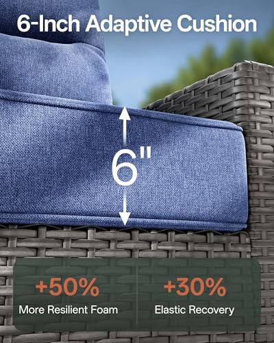 [6-Inch Thick Cushion — Sink In & Stay Supported]: Crafted from a single piece of 28D high-density foam, our 6-inch cushions deliver 40% deeper comfort and 30% more bounce-back than standard ones. The 3-layer design, premium foam core, soft polyfill, and lock-shaped cover—maintains 97% of its shape after 1,000 hours of use, always ready to give you a cozy embrace whenever you sink in