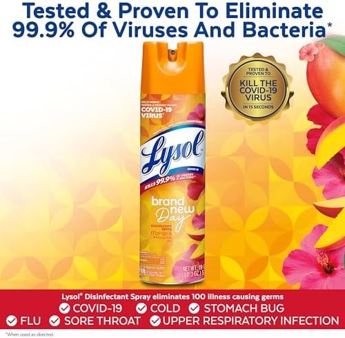 FRESH SCENT: Lysol neutralizes tough odors and adds a fresh scent for up to 24 hours; Use this product daily to disinfect your soft surfaces; Leave behind a mango & hibiscus scent, effectivley replacing odors and refreshing your space with a clean fragrance