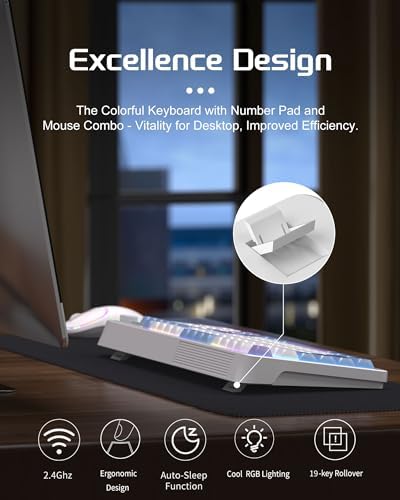 【RGB Lighting Keyboard and Mouse Combo】MageGee blue white keyboard with cool RGB lighting. Double Injection Keycap provide crystal clear uniform backlight and ergonomic curves, more advanced technology, clearer fonts and better light transmission.The bottom of the keyboard is designed with a foldable bracket, choose the height you need!