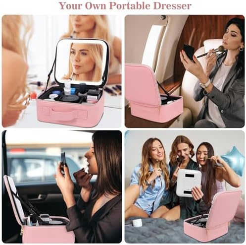 Luxury Gift Worth LED Mirror Makeup Bag Set: For practical and stylish women, this travel makeup bag with LED mirrors combines thoughtful design and premium features, pink makeup bag from a glossy appearance to a professional-grade glow mirror, which elevates the taste of everyday life and travel experiences. The elegant packaging is perfect for birthdays, holidays or bridal occasions. A gift to brighten the soul