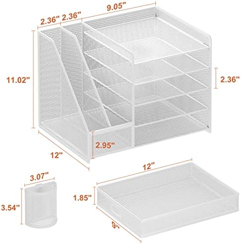 Function: File Holder, Office supplies desk organizer, Paper tray organizer, Pen holder, Drawer storageAdvantage: Larger capacity, Multiple Function, Space-Saving, Classy LookSturdy and Durable, Black, Metal wire mesh constructionEasy To Assemble