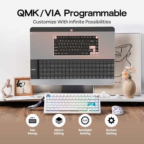 QMK/VIA Programmable Customization: Support for QMK and VIA, CIDOO QK75 custom keyboard allows complete key remapping, macro creation, layer editing, and function customization—no software installation required (web-based VIA tool). Tailor every key to your gaming habits or work needs, adjust RGB effects, and save profiles directly to this custom keyboard, making it a personalized tool for gamers, programmers, and productivity users.