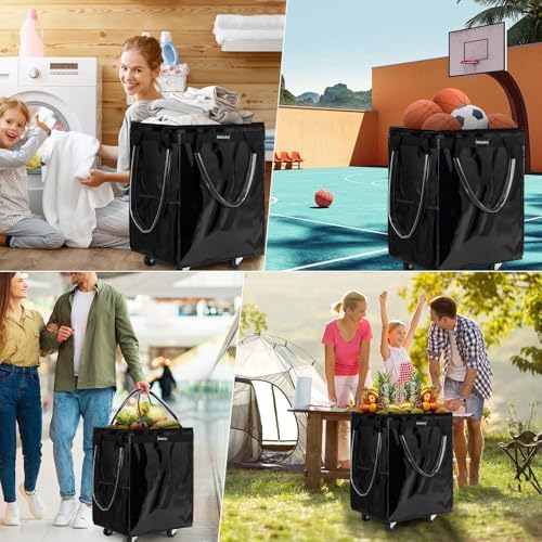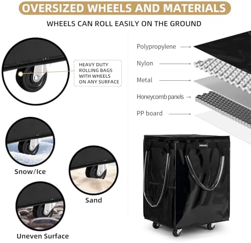 Versatile & Stylish for Any Occasion :From business trips to music festivals, this rolling tote combines minimalist design with neutral tones to match any style. Loved by 10,000+ users with Tote a whole 4-5 full grocery bags with wheels, this rolling tote with wheels and handle is the ultimate choice for urban commuters and outdoor enthusiasts alike.