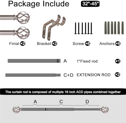 【Size】The curtain rod has a total length of 18-45 inches and is suitable for window widths of 24-35 inches. If you have any questions when purchasing, please contact us