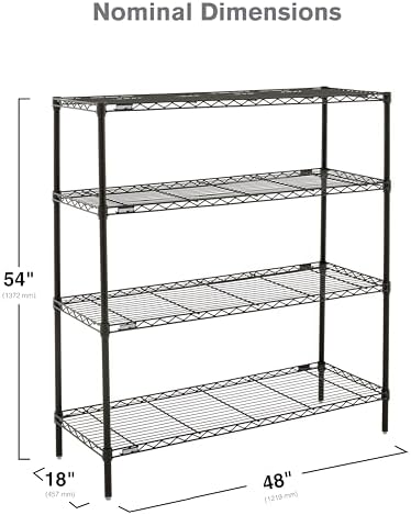 Designed for Durability: Our innovative wire shelving posts and collars are fully encased to ensure maximum stability and durability, without compromising style. With a maximum weight capacity of 720 lbs (327 kg), this 4-shelf unit can conquer any organizing challenges. Each shelf supports up to 300 lbs (136 kg), so you can maximize space in the kitchen, laundry room, garage, basement, office, and more.