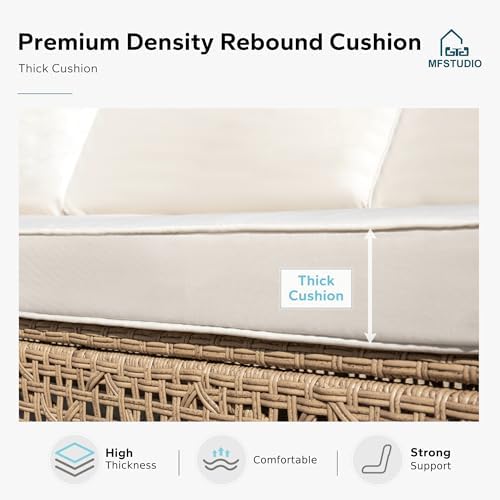 Sturdy Frame – Wicker patio sofa features high-quality natural acacia wood legs, and PU paint on the outside of the legs can ensure years of use and long term stability, and it is not easy to rust and rot in outdoor scenes. Every seat can with stand up to 350lbs for outstanding durability and comfort