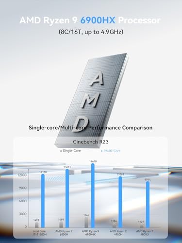 【Powerful Processing】The UM690L Slim Mini PC comes with AMD Ryzen 9 6900HX (6C/12T up to 4.9Ghz) processor,delivering swift and efficient performance for seamless productivity. It is ideal for photo editing, web browsing, casual gaming, media playback, everyday use, coding, and more.