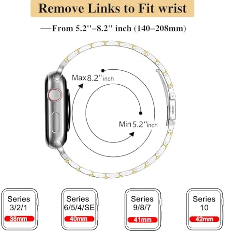 【Easy to Adjust】 iWatch bands comes with removal tools and an instruction. You can easy to remove the extra chain link to fit for your small wrist. The apple watch bands size can be suitable for wrist from 5.5-8.2 inches (140mm-208mm). Please follow the correct steps to remove the watch chain to avoid damaging the band.