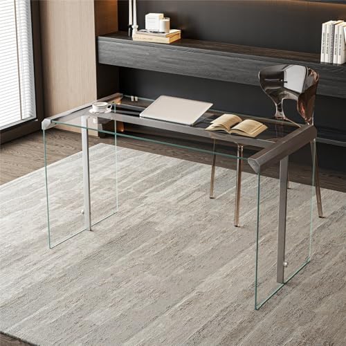 【Premium Tempered Glass & Reinforced Metal Support】 – Built with a thick tempered glass desktop and strong aluminum alloy legs, this modern office desk delivers excellent durability and scratch resistance. The sturdy construction supports up to 150 lbs, giving you a reliable workspace for monitors, laptops, and office accessories.