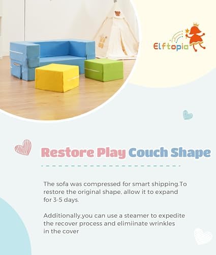 ❤Verstaile Kids Play Couch❤ The Eltopia kids sofa offers more than just comfort – it fosters creative play as well.It enjoys endless possiblities for your kids,allowing your little ones to explore themselves.It takes no effort to tranform the sofa into other shape.It can be used as a table,sleeper bed,pupet show frame,fort frame,ball pool,or hidout