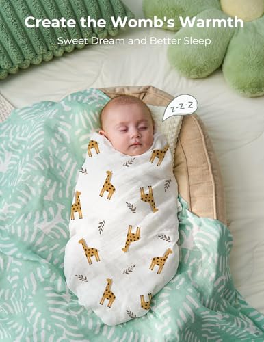 【Silky Texture Material, Softness Makes Gentle Love for Baby’s First Born】 Momcozy practical ultra soft newborn muslin swaddle blankets are made from natural cotton and the viscose derived from bamboo, which is friendly for baby delicate skin. No weird odors or blurred designs, gentle and cushy swaddle blanket provides a comfortable surface and a safe sleeping environment for babies helping soothe your newborn and keeping them calm when they are in sleep.