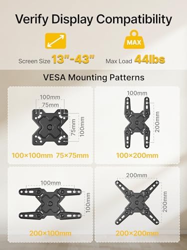DEPENDABLE TV STABILITY: Your TVs or monitor’s security is our top priority. Featuring strong construction with articulating arms, this TV wall mount has successfully passed a rigorous 4x max load test, can support up to 44 lbs. Premium heavy-duty steel, durable faceplate, and security screws provide an extra sense of security.