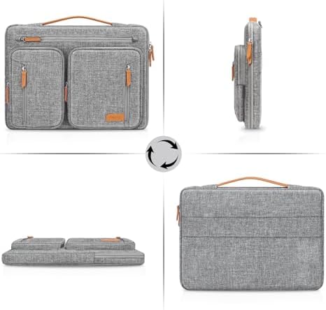 360 degree all around protective reinforced interior edge briefcase carrying case bag protect your laptop from any accidental dropping. Extendable handle design makes it to carry your laptop around in comfort, you can also tuck away the handle. Side opening zipper design, avoid accidental dropping of your laptop while carrying. 5 front accessory zipper pockets provide enough space to keep mouse, earphone, pens and notepads, offering added convenience.