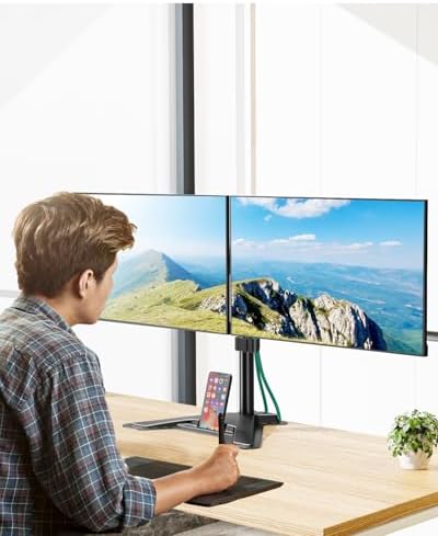Universal compatibility -The dual monitor stand widely fits most 13″ to 27″ LCD computer monitors with VESA 75×75 mm or 100×100 mm mounting holes on the back. Each arm can hold up to 17.6 lbs. This stand works better with two monitors of the same weight.