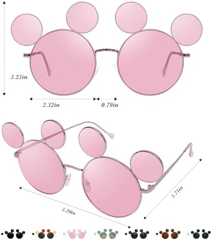 Mouse Ears Sunglasses for Women Men, Black Cartoon Sun Glasses with Case, Theme Park Accessories, UV Protection