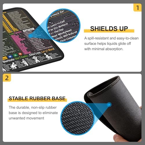 Compact & Portable Design: This Small Excel, Word, PowerPoint, & Windows Cheat Sheet Mouse Pad measures 11.8″ x 9.8″, offering a portable mouse pad. Its compact size fits in bags or laptop cases, suitable for professionals, students, or travelers.