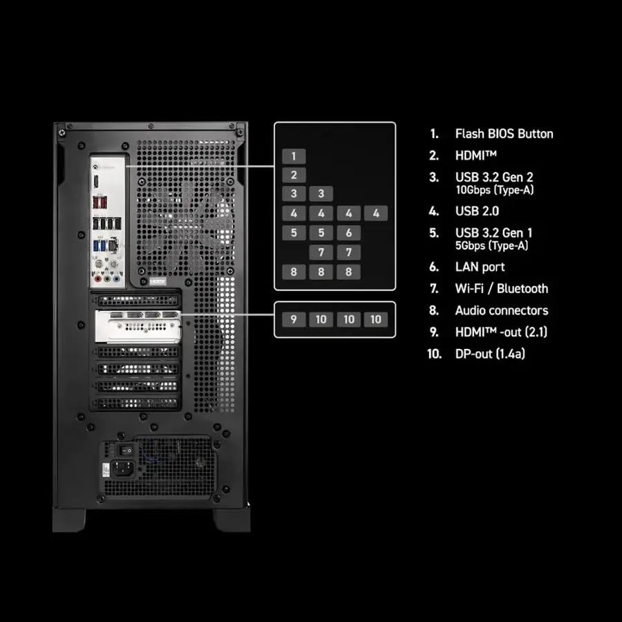 5 x USB-A 3.2, 1 x USB-C 3.2, 4 x USB 2.0, 1 x HDMI 2.1, 3 x DisplayPort 1.4a, 1 x RJ45 Ethernet