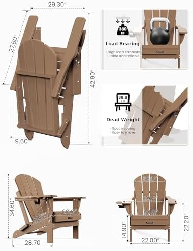 Weather Resistant and Recyclable Material: The poly adirondack chair is made of weather resistant and UV-proof High Density Polyethylene composite material (HDPE), it will not crack, fade, peel and rot in any weather condition