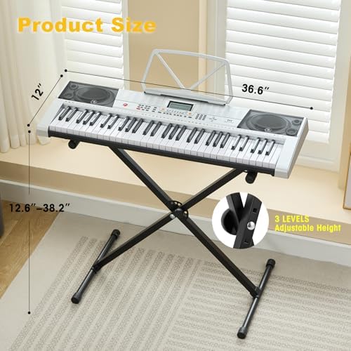 Portable Electric Piano Keyboard – Unit Size: 36.6*12*30 inches. 3 intelligent Teaching Modes – One key mode, Follow mode, and Ensemble mode, which is perfect for beginners to get started quickly and improve their performance ability.
