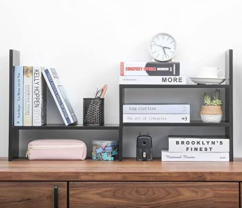 This multifunctional small shelf organizer is crafted with durability in mind to keep more than your office workspace organized; shelf can be used in the kitchen to hold spices, condiments, cookbooks or on the bathroom counter to hold all cosmetics and daily essentials **Books and decor not included**
