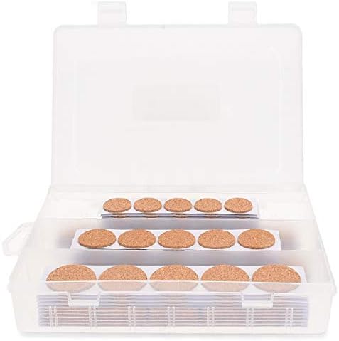 Protect your floors and other smooth surfaces with naturally soft, non-slip cork furniture pads. An assortment of 215 shapes and sizes are included so you’ll always have the right one. Comes in a transparent storage container.