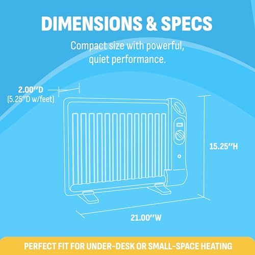 Whisper-Quiet, Fan-Free Heat for Focused Work – Unlike noisy fan heaters, this quiet desk heater uses advanced diathermic oil technology for silent, even heat. It won’t disturb your concentration or coworkers, making it the best under desk heater for office or bedroom. Enjoy gentle, steady warmth from this radiator-style heater, perfect for year-round comfort at home or work.