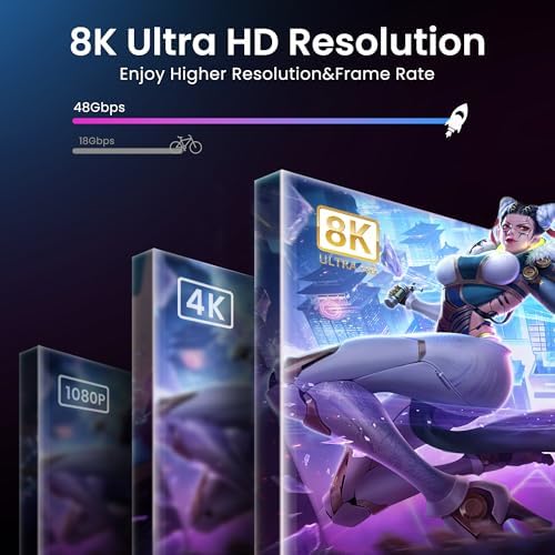 8K@60Hz & 4K@120Hz Ultra HD Support: Experience stunning clarity with 8K@60Hz and ultra-smooth gameplay with 4K@120Hz. This HDMI Switcher supports HDMI 2.1 standard with 48Gbps bandwidth, ensuring exceptional performance for next-gen gaming consoles and UHD streaming.