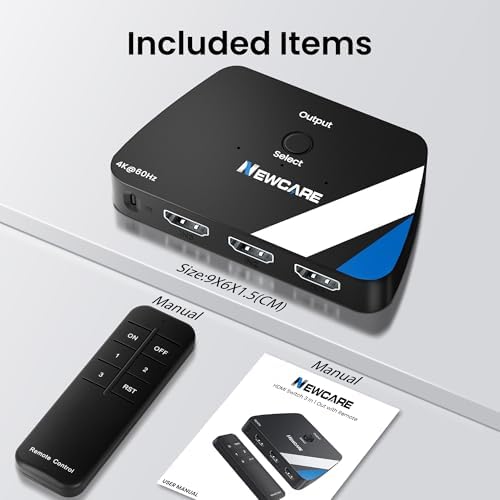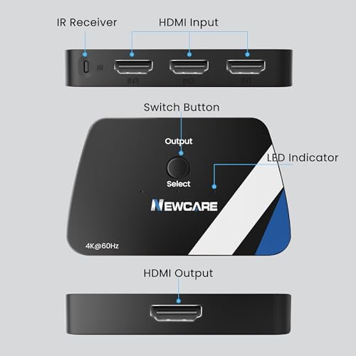 [4K@60Hz HDMI Switch with Remote]: Experience ultimate convenience with our HDMI Switch, designed to effortlessly switch between 3 input devices. No more struggling to reach behind your TV or wall to unplug and replug HDMI cables. With our 4K HDMI switch, you can easily and elegantly change your input devices from the comfort of your sofa, while also preventing damage to HDMI ports caused by frequent unplugging. Enjoy a seamless way to manage your HDMI connections!