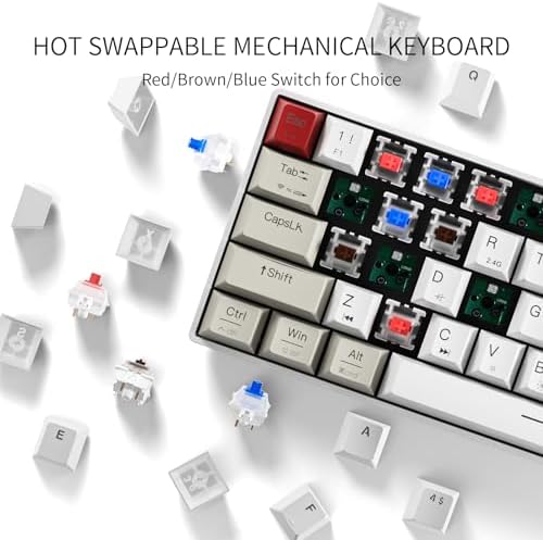 [Double Shot Keycaps & Hot-swappable] The two-color injection keycaps of this wireless mechanical gaming keyboard provide clear and uniform backlighting that never fades. And hot swappable function can let you customize your mechanical keyboard with different combination layout on keycaps and 3-pin switches(Outemu).