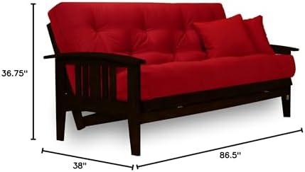 Functional three position queen size futon set with premium 8″ futon mattress; offers more seating flexibility and easily converts into a sofa, bed, and lounger