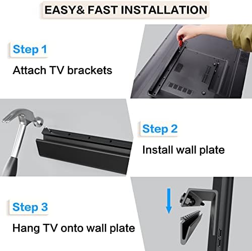 【EASY INSTALLATION IN 10 MINUTES】No drill TV wall mount comes with all the necessary hardware and an English graphical installation guide that is simple to understand, allowing for quick and easy installation within 10 minutes, even for those with no prior experience
