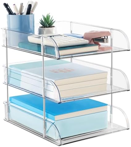【Multiple Functional】 The stackable desk organizers are suitable for various environments such as schools, home, offices, hospitals, etc. Can be placed on a desktop, drawer, cabinet, bookcase, or bathroom. Our storage tray set is a perfect gift for anyone who is fully loaded with books, letters, files, documents, office supplies and doesn’t have enough desktop space!