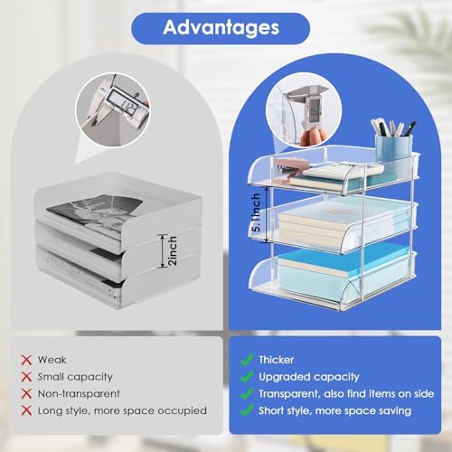【Clear Sturdy Material】Our desk organizer tray is made of thickened premium PET material material, which is not easy to deform and reliable to use for a long time. The transparent office storage make items clear at a glance, easy to find and also can find items on the side. It can provide a clean/organized look of your home and office desk for you.